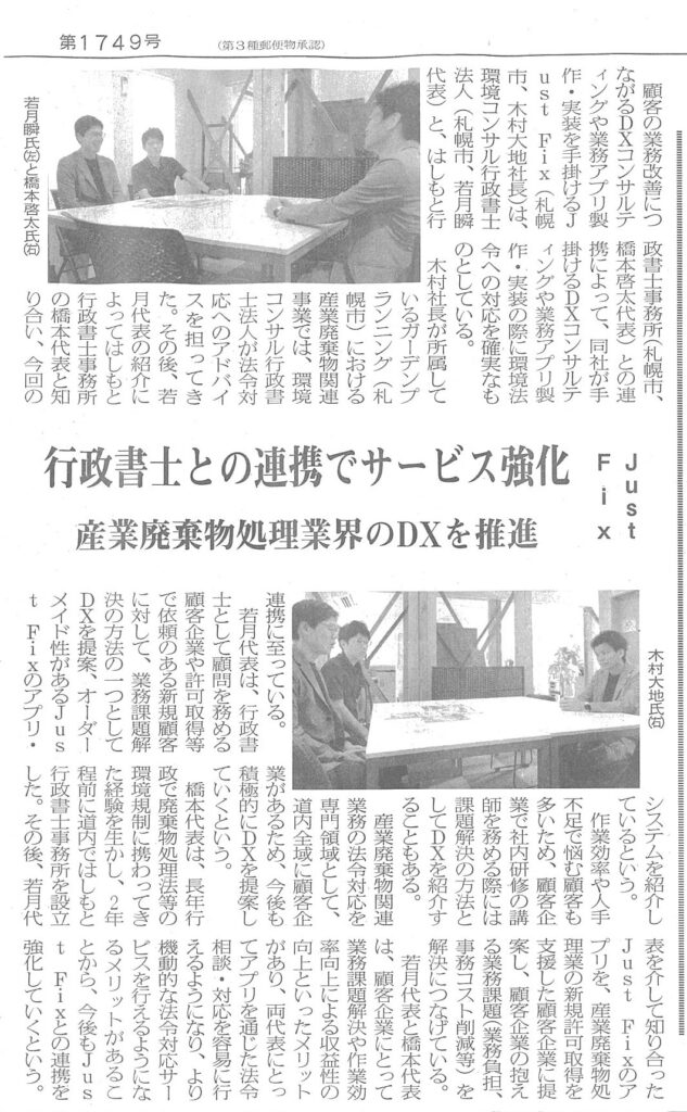 このたび、株式会社Just Fixの取り組みが循環経済新聞に掲載されました。